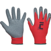 Pletené bezešvé nylonové rukavice (15GG), s nanesenou pružnou gumou v dlani a na prstech a pružnou manžetou.