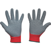 Pletené bezešvé polyesterové rukavice, máčené v černém latexu na dlani a na prstech, pružná manžeta.