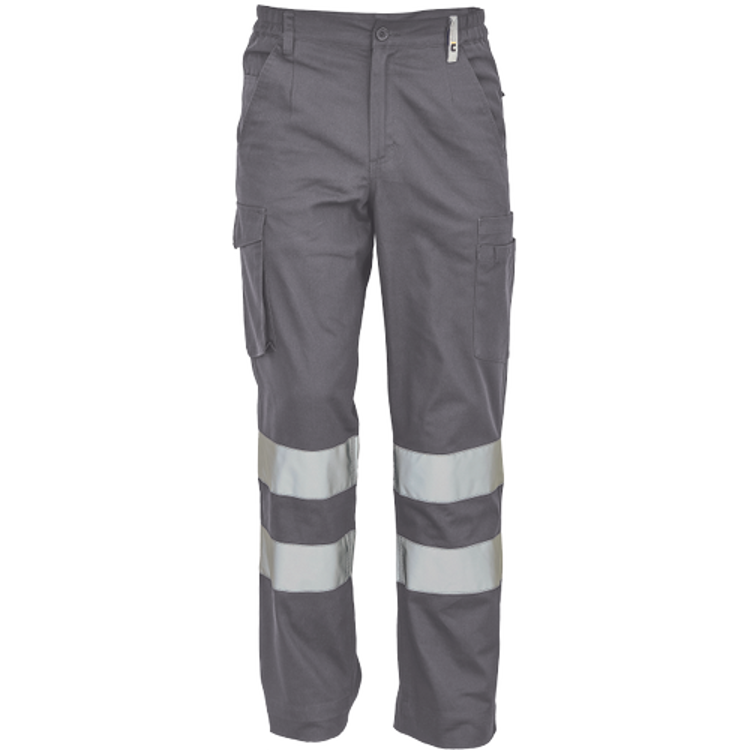 Popis: pánské lehké pracovní kalhoty s reflexními pruhy a elastickým pasem; 2 boční kapsy; 1 kapsička na mince; 2 stehenní kapsy;2 zadní kapsy; nastavitelná délka nohavic