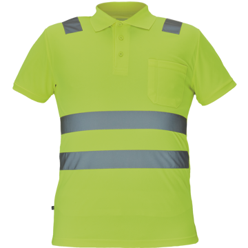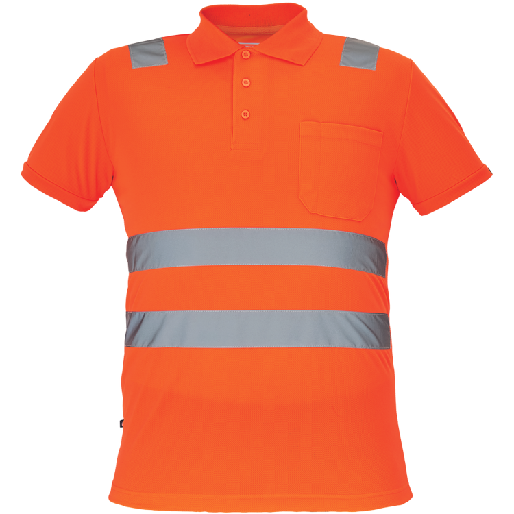 Popis: pánská full HI-VIS polokošile s reflexními pruhy přes ramena a v bocích; zapínání na 3 knoflíky; 1 náprsní kapsička; žebrovaný límeček a lemy rukávů