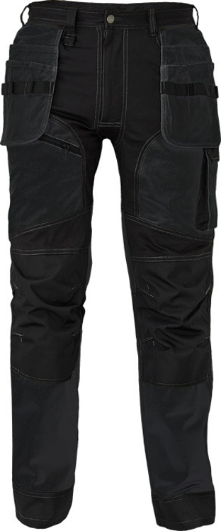 Popis: pánské pracovní kalhoty z elastického materiálu; 2 postranní kapsy a 2 vložitelné multifunkční kapsy na nářadí; "D" kroužek; 1 boční kapsa na nohavici s patkou; 1 kapsa na nohavici na zip; 2 nakládané zadní kapsy s patkou; zesílená oblast kolen s možností; vkládání kolenních výztuh; záložka na nohavici umožňující prodloužení délky až o 5 cm; zesílená zadní strana spodku nohavice; dekorativní prošití