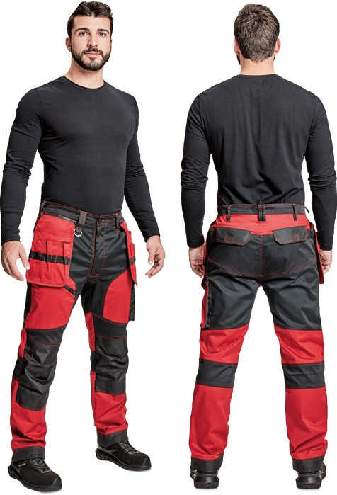 Popis: pánské pracovní kalhoty z elastického materiálu; 2 postranní kapsy a 2 vložitelné multifunkční kapsy na nářadí; "D" kroužek; 1 boční kapsa na nohavici s patkou; 1 kapsa na nohavici na zip; 2 nakládané zadní kapsy s patkou; zesílená oblast kolen s možností; vkládání kolenních výztuh; záložka na nohavici umožňující prodloužení délky až o 5 cm; zesílená zadní strana spodku nohavice; dekorativní prošití