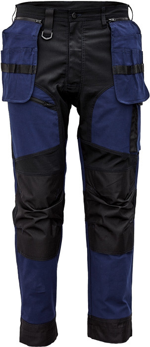 Popis: pánské pracovní kalhoty z elastického materiálu; 2 postranní kapsy a 2 vložitelné multifunkční kapsy na nářadí; "D" kroužek; 1 boční kapsa na nohavici s patkou; 1 kapsa na nohavici na zip; 2 nakládané zadní kapsy s patkou; zesílená oblast kolen s možností; vkládání kolenních výztuh; záložka na nohavici umožňující prodloužení délky až o 5 cm; zesílená zadní strana spodku nohavice; dekorativní prošití