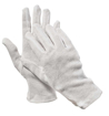 Rukavice bez manžety šité z česaného bavlněného úpletu podle střihu fourchette, v celkové délce 23 cm.