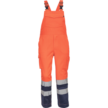 Popis: pánské lehké HI-VIS pracovní kalhoty s laclem a reflexními pruhy na nohavicích, elastický pas; 2 boční kapsy, 1 kapsička na mince; 2 multifunkční stehenní kapsy, 2 zadní kapsy; 1 velká multifunkční náprsní kapsa; elastické šle se zapínáním na sponu; nastavitelná délka nohavic