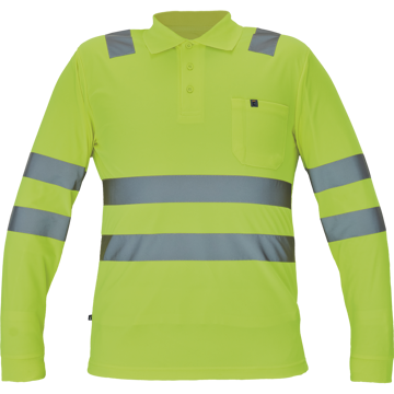 Popis: pánská full HI-VIS polokošile s dlouhým rukávem; reflexní pruhy přes ramena a v bocích; zapínání na 3 knoflíky; 1 náprsní kapsička; elastické lemy rukávů