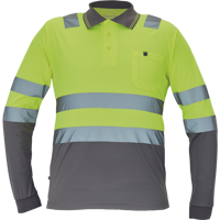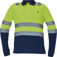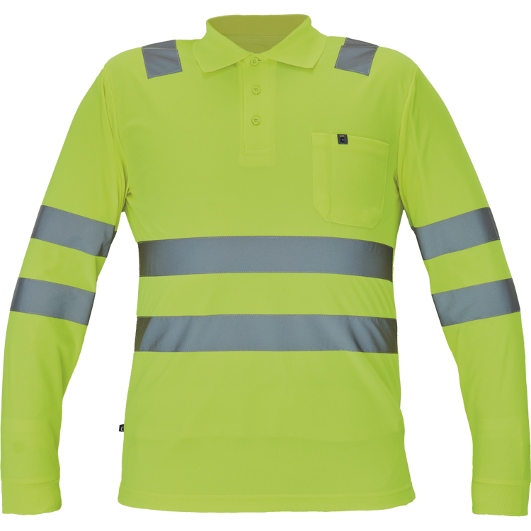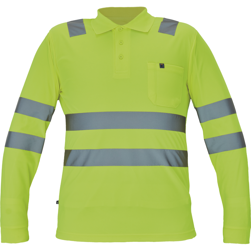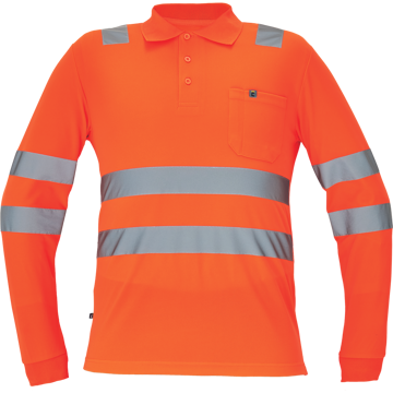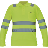 Popis: pánská full HI-VIS polokošile s dlouhým rukávem; reflexní pruhy přes ramena a v bocích; zapínání na 3 knoflíky; 1 náprsní kapsička; elastické lemy rukávů
