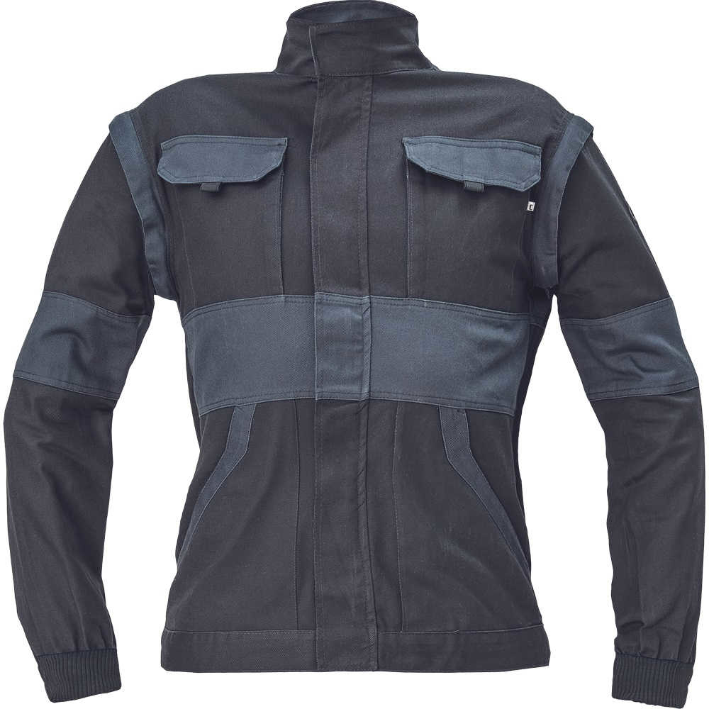 dámská pracovní bunda se zapínáním na zip krytým légou; odepínatelné rukávy; 2 přední kapsy, 2 náprsní kapsy; zesílení namáhaných míst loktů a ramen; pružné manžety rukávů a spodní obvod v pase.