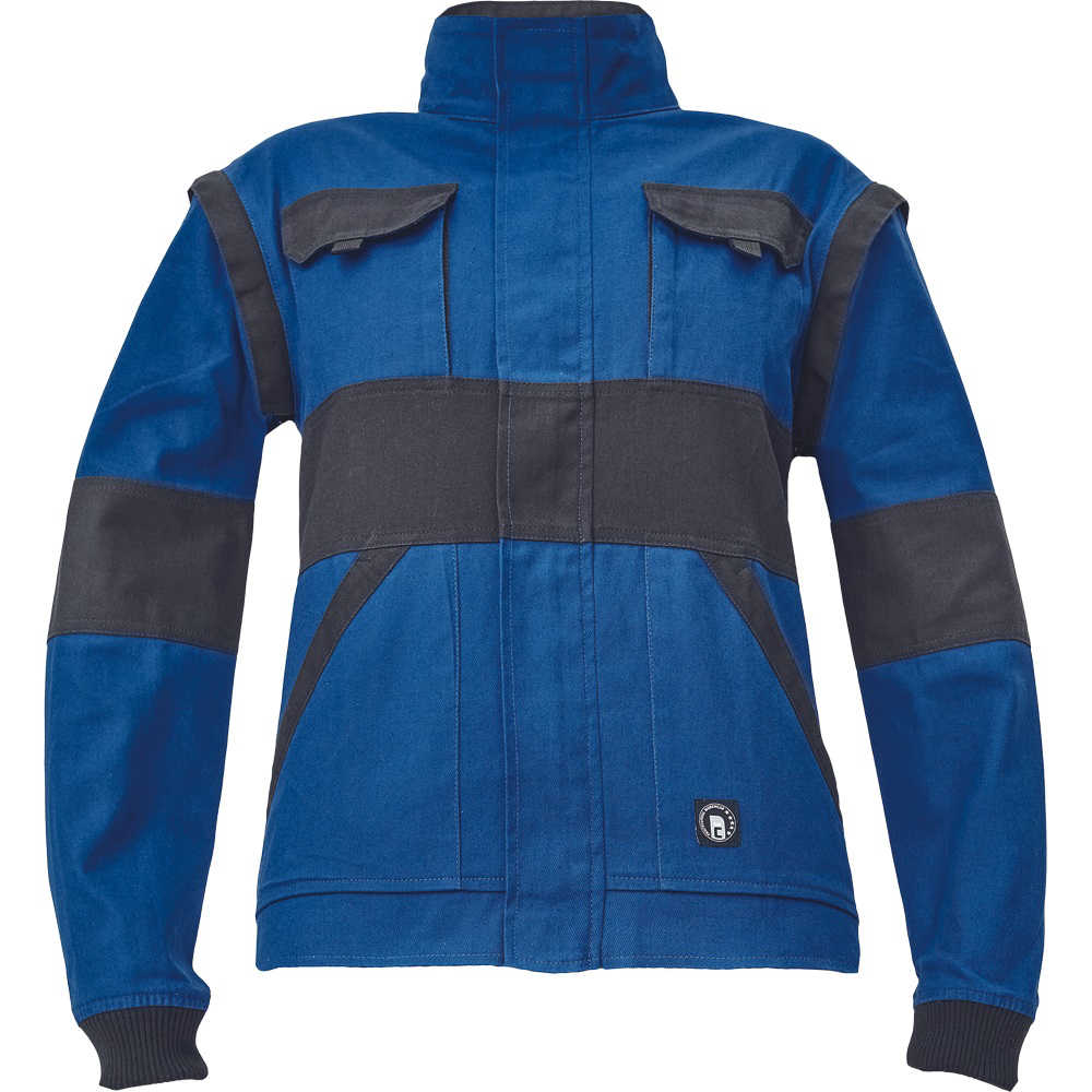 dámská pracovní bunda se zapínáním na zip krytým légou; odepínatelné rukávy; 2 přední kapsy, 2 náprsní kapsy; zesílení namáhaných míst loktů a ramen; pružné manžety rukávů a spodní obvod v pase.