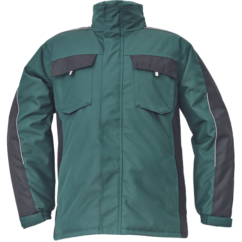 Popis: pánská zimní bunda; zapínání na zip kryté légou na suchý zip; 2 boční kapsy, 2 náprsní kapsy na suchý zip; 1 vnitřní kapsa na mobilní telefon; elastické manžety rukávů se suchým zipem; reflexní prvky.