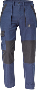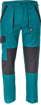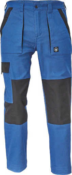 • pánské pracovní kalhoty s elastickým pasem • 2 přední kapsy • 1 stehenní kapsa • 2 zadní kapsy • zesílená oblast kolen • nastavitelná délka nohavic