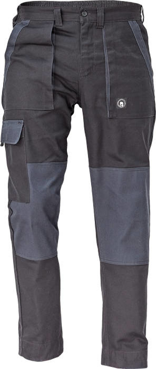 Popis:• pánské pracovní kalhoty s elastickým pasem • 2 přední kapsy • 1 stehenní kapsa • 2 zadní kapsy • zesílená oblast kolen • nastavitelná délka nohavic