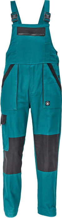 • pánské pracovní kalhoty s laclem a elastickým pasem • široké šle s plastovými sponami • 2 přední kapsy, 1 stehenní kapsa • 1 velká náprsní kapsa, 2 zadní kapsy • zesílená oblast kolen • nastavitelná délka nohavic