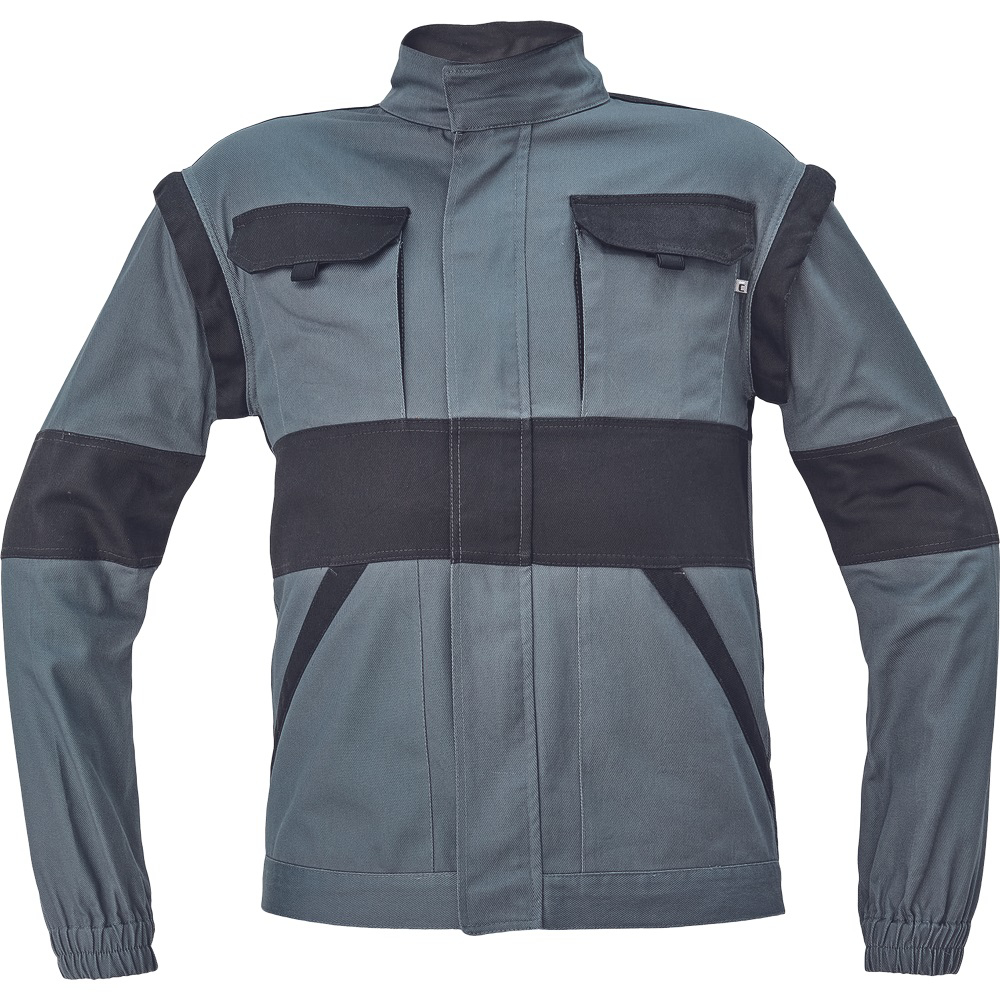 pánská pracovní bunda se zapínáním na zip krytým légou; odepínatelné rukávy; 2 přední kapsy, 2 náprsní kapsy; zesílení namáhaných míst loktů a ramen; pružné manžety rukávů a spodní obvod v pase.