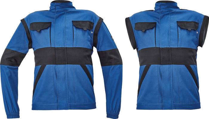 pánská pracovní bunda se zapínáním na zip krytým légou; odepínatelné rukávy; 2 přední kapsy, 2 náprsní kapsy; zesílení namáhaných míst loktů a ramen; pružné manžety rukávů a spodní obvod v pase.