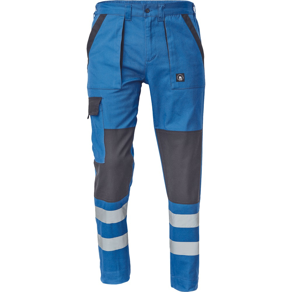 Popis:• pánské pracovní kalhoty s elastickým pasem • 2 přední kapsy • 1 stehenní kapsa • 2 zadní kapsy • reflexní pruhy na spodní části nohavic • zesílená oblast kolen • nastavitelná délka nohavic