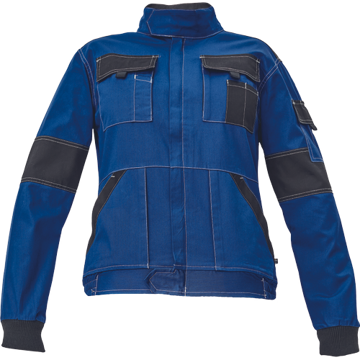 • dámská lehká pracovní bunda se zapínáním na zip krytým légou • 2 přední kapsy• 2 náprsní kapsy s klopou • 1 malá kapsa na levém rukávu • zesílení namáhaných míst loktů a ramen • pružné manžety rukávů a spodní obvod v pase