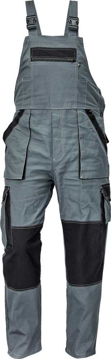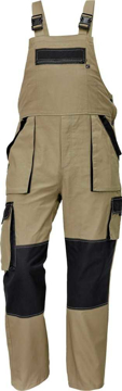 • pánské lehké pracovní kalhoty s laclem a elastickým pasem • široké šle s plastovými sponami • 2 přední kapsy, 2 stehenní kapsy • 1 velká náprsní kapsa na zip, 2 zadní kapsy • zesílení nohavic v oblasti kolen • nastavitelná délka nohavic