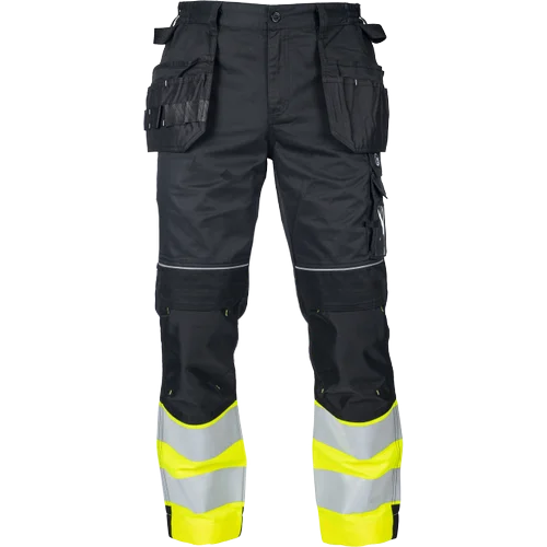 • pánské pracovní HI-VIS kalhoty s elastickým pasem • 2 multifunkční létací kapsy • 2 tištěné 7,5 cm široké reflexní pruhy na spodních nohavicích • zesílení kolenních částí Oxford 600D s možností vložení chráničů kolen • možnost prodloužení délky nohavic