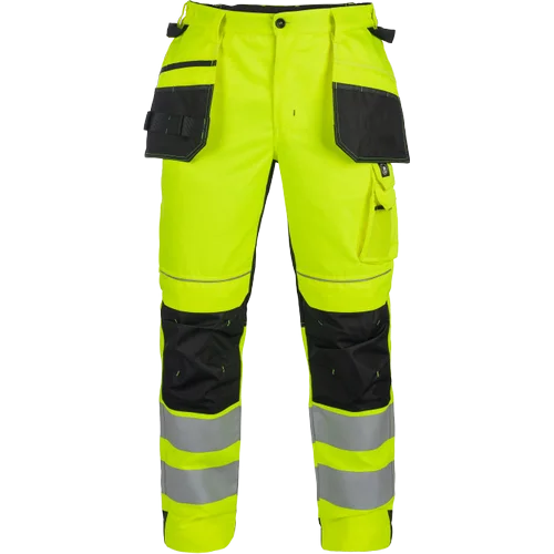 • pánské pracovní HI-VIS kalhoty s elastickým pasem • 2 multifunkční létací kapsy • 2 tištěné 7,5 cm široké reflexní pruhy na spodních nohavicích • zesílení kolenních částí Oxford 600D s možností vložení chráničů kolen • možnost prodloužení délky nohavic