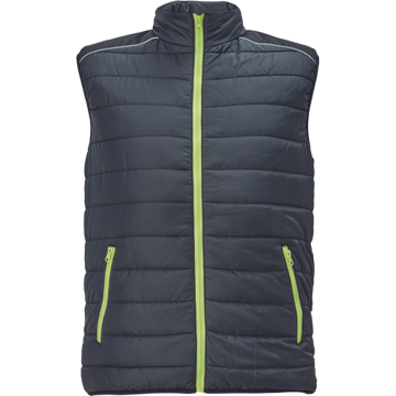 Popis: pánská zateplená vesta; elastický pas; zapínání na zip; 2 boční kapsy na zip.