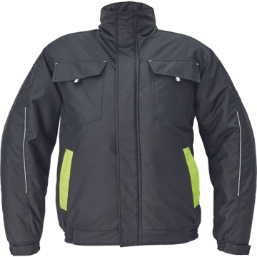 Popis: pánská zimní pilot bunda; pružný pas; zapínání na zip kryté légou na suchý zip; 2 boční kapsy, 2 náprsní kapsy na suchý zip; 1 vnitřní kapsa na mobilní telefon; elastické manžety rukávů se suchým zipem; reflexní prvky.