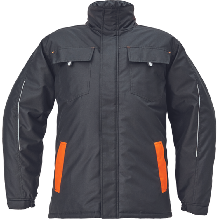 Popis: pánská zimní bunda; zapínání na zip kryté légou na suchý zip; 2 boční kapsy, 2 náprsní kapsy na suchý zip; 1 vnitřní kapsa na mobilní telefon; elastické manžety rukávů se suchým zipem; reflexní prvky.