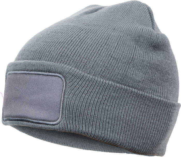 Pletená zimní čepice s čelním štítkem pro výšivku nebo potisk.