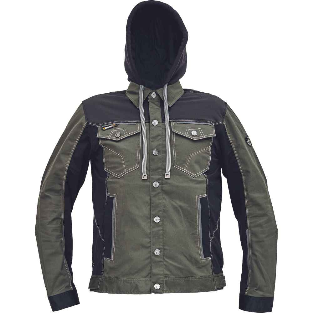 pánská pracovní bunda s odepínací kapucí a zapínáním na druky; elastický inovativní materiál TRIFIBETEX® v kombinaci se 4way strečovým materiálem TRIFIBETEXPRO®; trojité prošívání, CORDURA zesílení v oblasti ramen; 2 boční kapsy, 2 náprsní kapsy na druky; nastavitelná šíře rukávů se zapínáním na druky; reflexní prvky v barevném odstínu.