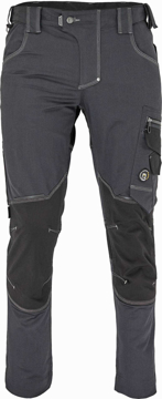 Popis: pánské pracovní kalhoty, elastický inovativní materiál TRIFIBETEX®, slim střih, snížený pružný pas, odolné trojité prošití nohavic a sedu, CORDURA zesílená oblast kolen, prostorné multifunkční přední kapsy s poutky na nářadí, 2 zadní kapsy, stehenní kapsa na telefon s klopou a zapínáním na suchý zip, kapsa na metr a nůž, poutko na kladivo, "D" kroužek, poutko na nářadí v pase, originální zpracování zapínání kalhot, reflektivní prvky v barevném odstínu, nastavitelná délka nohavic.