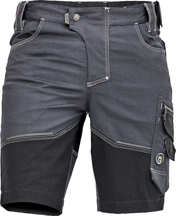 Popis: pánské pracovní šortky, elastický inovativní materiál TRIFIBETEX®, slim střih, snížený pružný pas, odolné trojité prošití nohavic a sedu, prostorné multifunkční přední kapsy s poutky na nářadí, 2 zadní kapsy na suchý zip, stehenní kapsa na telefon s klopou a zapínáním na suchý zip, kapsa na metr a nůž, poutko na kladivo, "D" kroužek, poutko na nářadí v pase, originální zpracování zapínání kalhot, reflektivní prvky v barevném odstínu.