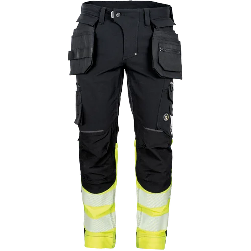 • pánské HI-VIS pracovní kalhoty s pružným pasem doplněné o 2 boční odepínatelné, multifunkční "létající" kapsy • 2 zadní kapsy se zapínáním na suchý zip • 2 multifunkční stehenní kapsy • elastické inovativní materiály TRIFIBETEX PRO® a TRIFIBETEX VIS® • odolné trojité prošití nohavic a sedu • CORDURA® zesílení v oblasti kolen s možností vkládání kolenních výztuh • 7,5 cm široké tištěné segmentované reflexní pruhy • reflexní prvky v barevném odstínu • nastavitelná délka nohavic