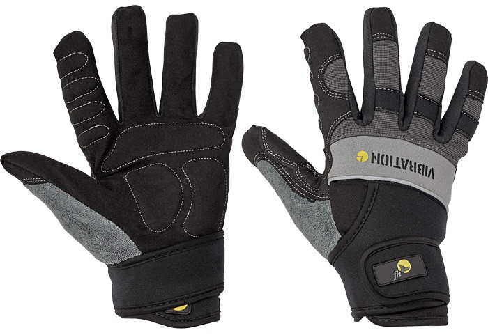 Rukavice z umělého semiše v dlani, Spandexu na hřbetu s chrániči kloubů, s dvojitou stahovací manžetou na suchý zip a antivibračními poštářky na exponovaných místech.