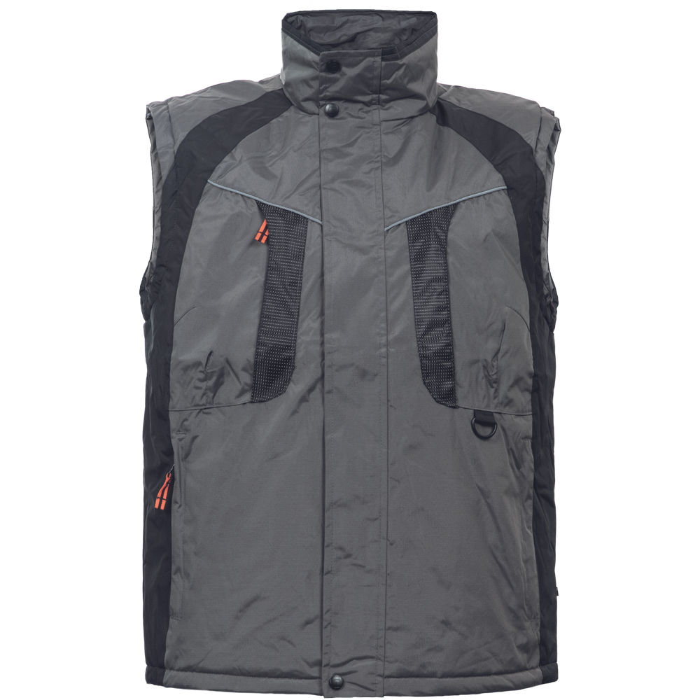 Popis: zateplená nepromokavá pánská zimní vesta se stojáčkem; mechanicky odolná úprava RipStop; zapínání na zip kryté légou; spodní lem ke stažení na šňůrku; 2 postranní kapsy, 2 náprsní kapsy; reflexní doplňky.