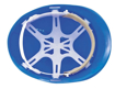 průmyslová ventilovaná přilba; 6-ti bodovým náhlavním kříž; nastavení velikosti (55-62 cm) pomocí posuvného pásku