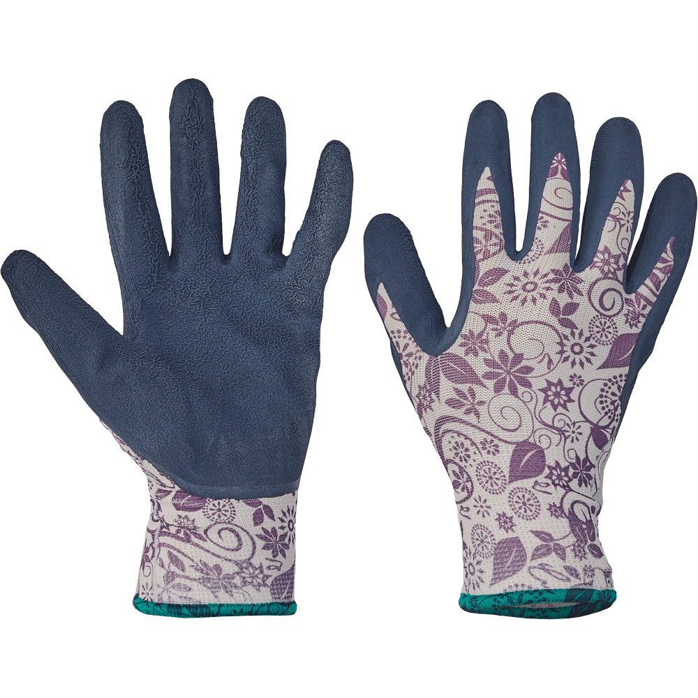Bezešvé pletené rukavice ze syntetické příze s nánosem latexu na dlani a prstech. Pružná manžeta.