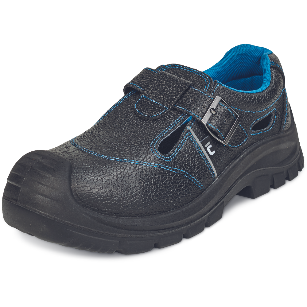 Klasické bezpečnostní sandály s ocelovou tužinkou ve špici, která chrání před stlačením silou do 15 kN nebo pádem břemena o váze do 20kg z výšky 1m.
