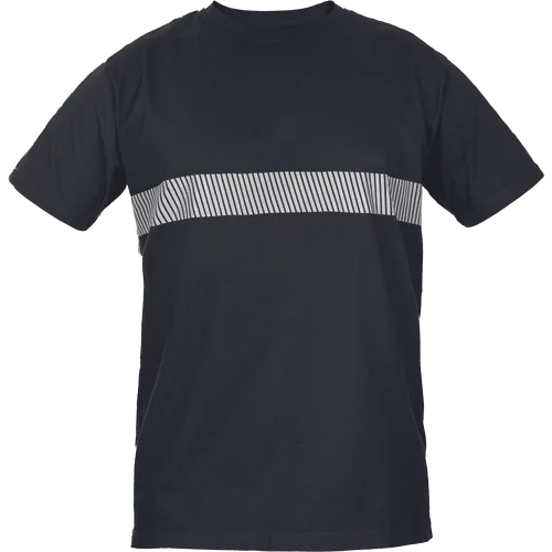 • unisex bavlněné tričko s tištěnými reflexními segmentovanými pruhy přes hruď a záda