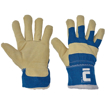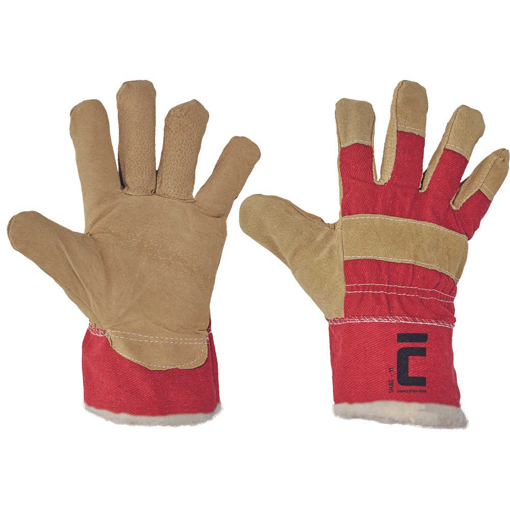 Rukavice z vepřové štípenky v dlani, bílé bavlněné tkaniny na hřbetu a manžetě a s teplou podšívkou.