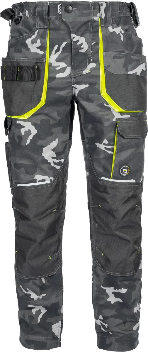 • pánské pracovní kalhoty s pružným pasem a multifunkčními kapsami • v moderní úpravě šedé kamuflážové barvy • Oxford 600D zesílení kolenních kapes pro vkládání ochranných nákoleníků • odolné trojité prošití nohavic a sedu • reflexní prvky • nastavitelná délka nohavic