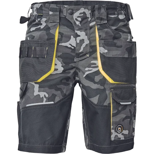 • pánské pracovní šortky s pružným pasem a multifunkčními kapsami • v moderní úpravě šedé kamuflážové barvy • Oxford 600D zesílené spodní částí kapes • odolné trojité prošití nohavic a sedu • reflexní prvky