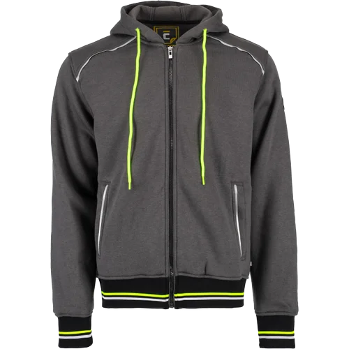 • celopropínací mikina s kapucí ze směsového úpletu bavlny a polyesteru zevnitř nepočesaná • reflexní paspulka lemující sedlo a lištové kapsy • dvojitá kapuce s kontrastním úpletem v barvě zipu a dekorativního prošití • pružné náplety na rukávech a spodním obvodu