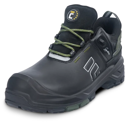• Sign‑D S7S je pohodlná a vysoce odolná polobotková bezpečnostní obuv z prémiové řady CERVA Signatures, určená do těžkých pracovních podmínek, kde je klíčová stabilita, ochrana a jistý krok v terénu • robustní dvouvrstvá podešev s mezipodešví z nízkohustotního PU a odolným gumovým nášlapem s výrazným vzorkem poskytuje vynikající stabilitu a trakci na nerovných a nestabilních površích, jako je suť nebo bláto, a umožňuje bezpečný pohyb po žebřících díky LG (ladder gripu) • kompozitní tužinka a planžeta proti propíchnutí typu PS zajišťují vysokou úroveň ochrany bez zbytečné hmotnosti • svršek z lícové hovězinové usně 1,8–2,0 mm je doplněn voděodolnou membránou DINTEX • obuv splňuje parametry HI, CI, HRO, FO, SR, ESD a je vybavena krycí špičkou SC • reflexní prvky podtrhují praktický a technicky propracovaný charakter obuvi pro profesionální používání