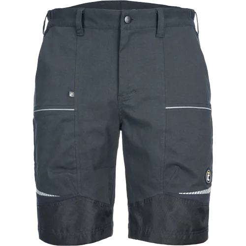 • pánské pracovní šortky ze strečové tkaniny • pružný pas s poutky na opasek • 2 přední kapsy, 2 zadní kapsy • 2 stehenní ventilační mesh kapsy na zip • zesílené přední části nohavic • reflexní lemování a tištěné reflexní detaily