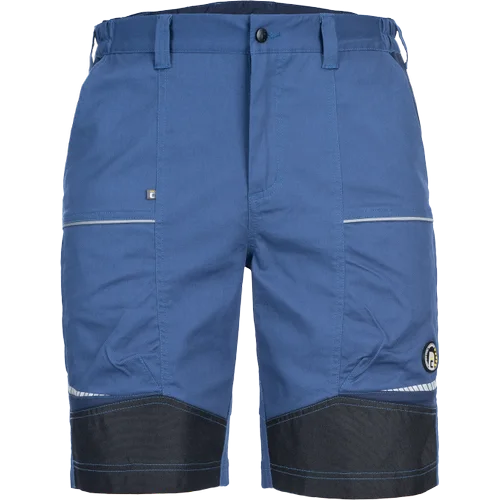 • pánské pracovní šortky ze strečové tkaniny • pružný pas s poutky na opasek • 2 přední kapsy, 2 zadní kapsy • 2 stehenní ventilační mesh kapsy na zip • zesílené přední části nohavic • reflexní lemování a tištěné reflexní detaily