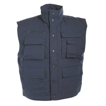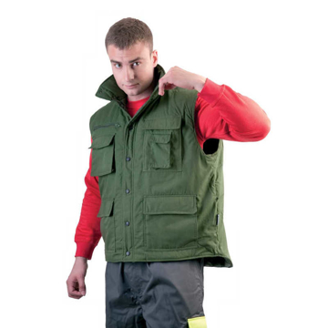 Popis: zateplená pánská zimní vesta se stojáčkem; prodloužený díl na zádech; zapínání na plastové druky; 2 velké přední multifunkční kapsy; 2 náprsní mutlifunkční kaspy