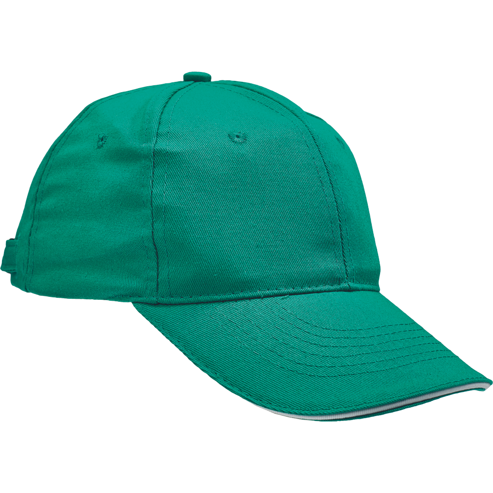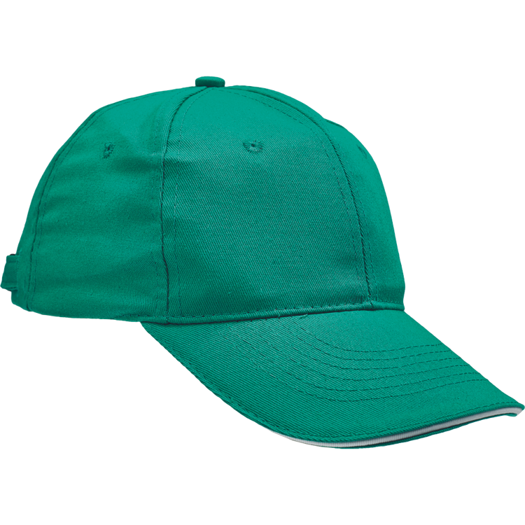 čepice baseballového typu s regulací velikosti pomocí kovové spony.