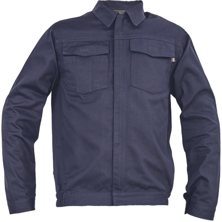 Popis: pánská lehká pracovní bunda, zapínání na zip kryté légou na suchý zip; 2 náprsní kapsy s klopou; elastický lem v bocích; nastavitelná šířka rukávů pomocí suchého zipu