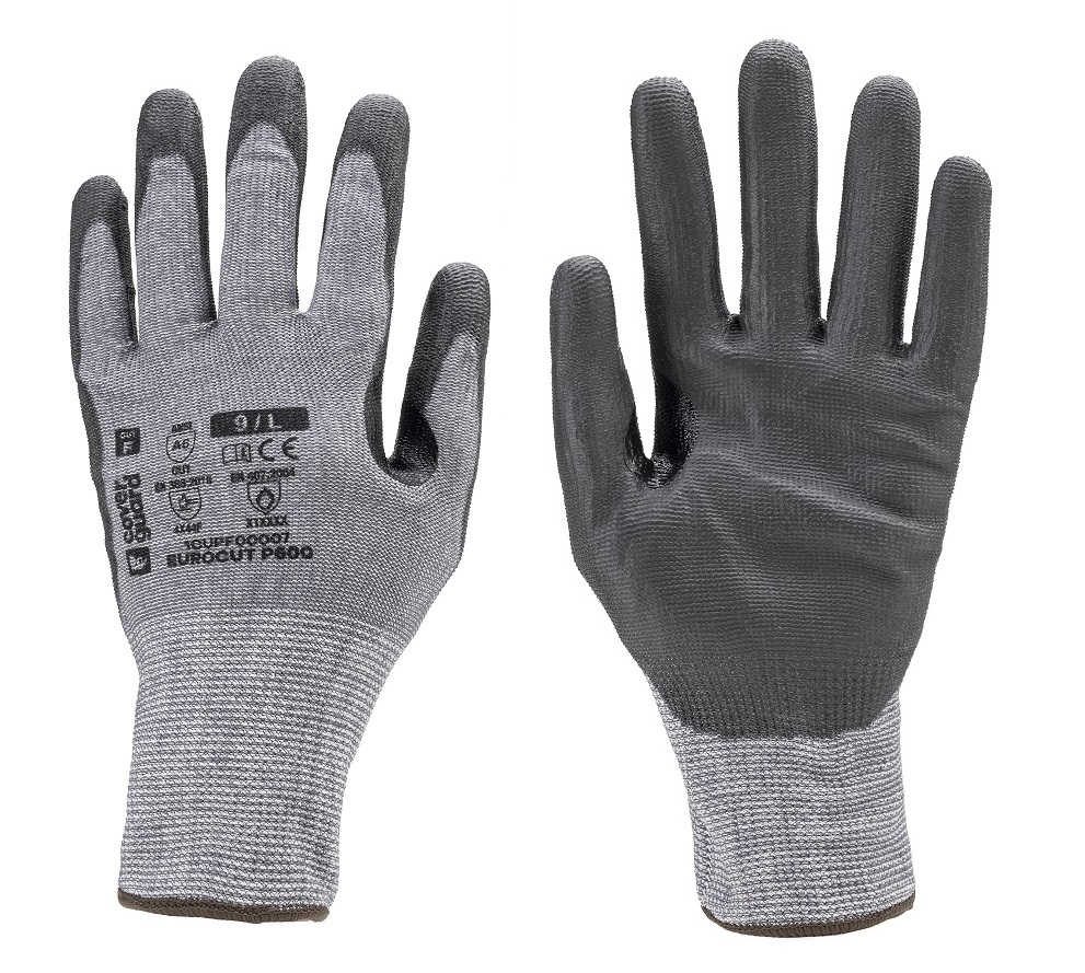 Popis: Bezešvé protipořezové rukavice s odolností proti řezu F, s dlaněmi a prsty máčenými v polyuretanu. Vynikající odolnost proti oděru a pořezání ostřím. Šedý bezešvý úplet z HDPE Černá PU vrstva na dlani Nitrilová výztuž mezi palcem a ukazovákem Pletená manžeta Certifikace OEKO-TEX® STANDARD 100, CQ 1301/1, IFTH