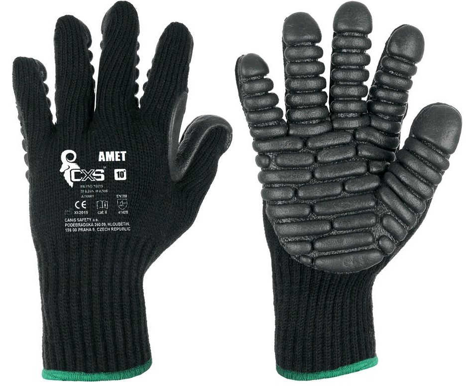 Pletené rukavice s antivibračními polštářky z pěnového latexu v dlani, pružná manžeta.